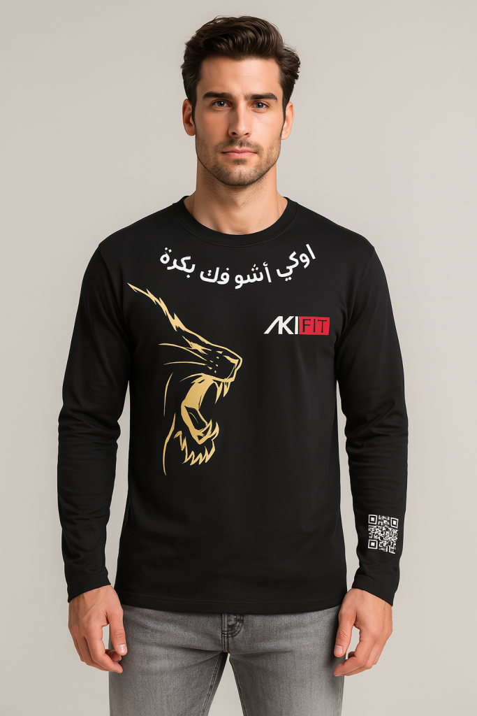 Featuring a fierce golden lion, AK FIT branding, and bold Arabic text  “أوكي أشوفك بكرة” (“Okay, I’ll see you tomorrow”)  this shirt captures the attitude of those who lead, not follow.